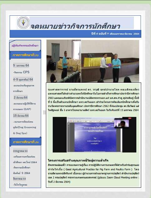 เม.ย. 19 Love0 จดหมายข่าวกิจการนักศึกษา ปีที่ 4 ฉบับที่ 9 By admin จดหมายข่าวกิจการนักศึกษา, ไม่มีหมวดหมู่ Read More